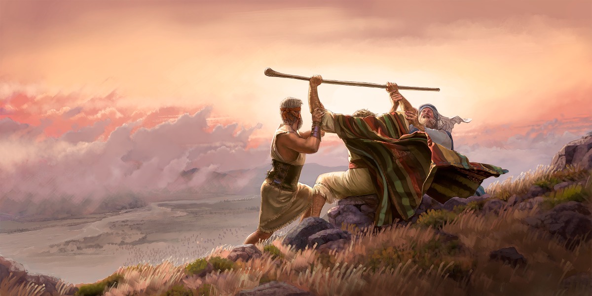 As if they needed another reason to whine, in verse 8 we see that Israel is attacked by the army of Amalek. But God has another lesson to teach them. They muster an army, and during the battle Moses is going to stand on a hilltop with his staff in his hand. This is where we first meet Joshua, and notice that the Greek name for Joshua is Iesous— exactly the same as the name of Jesus in the New Testament.